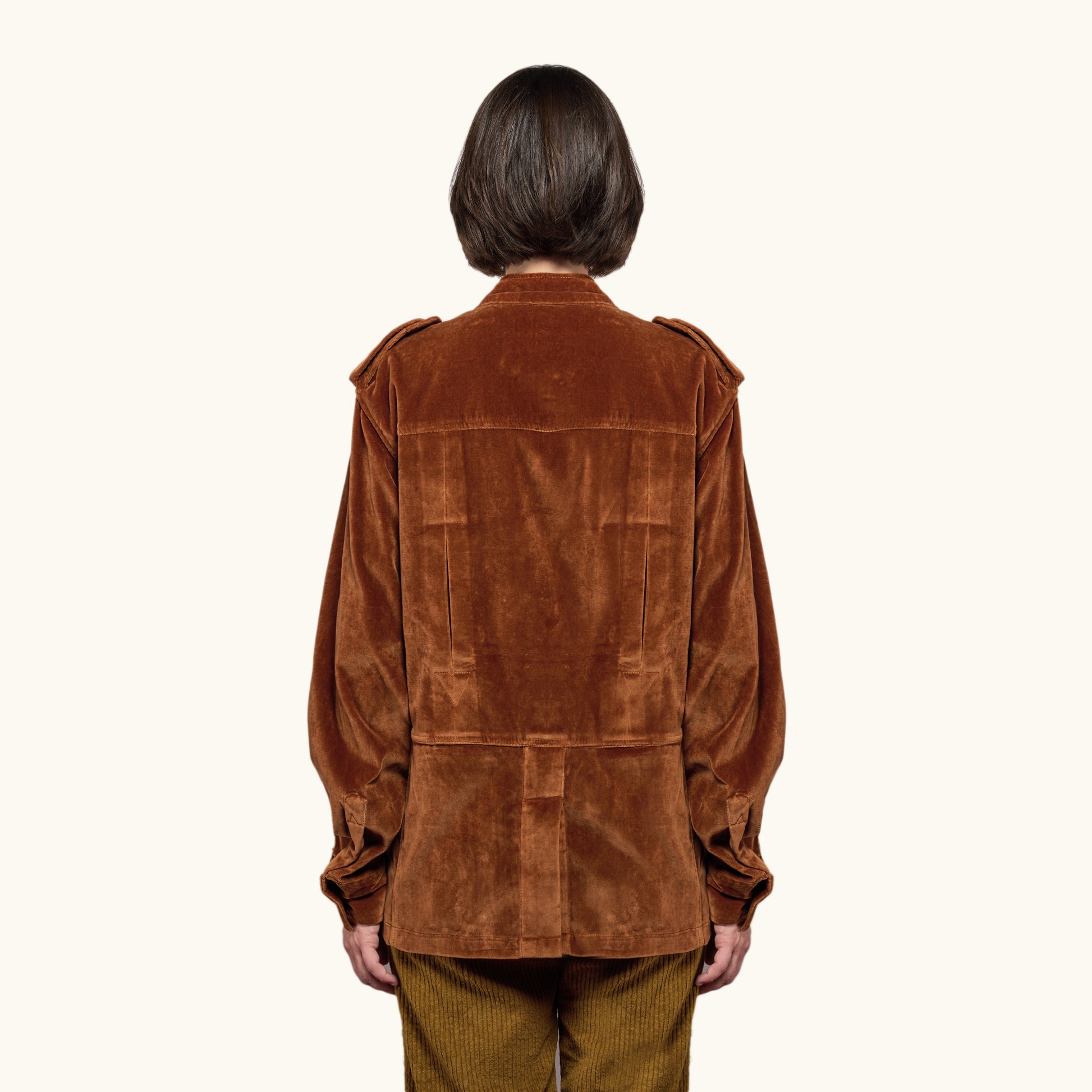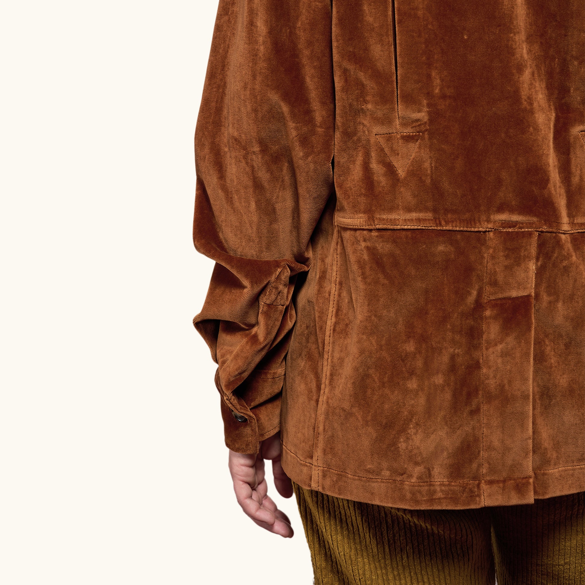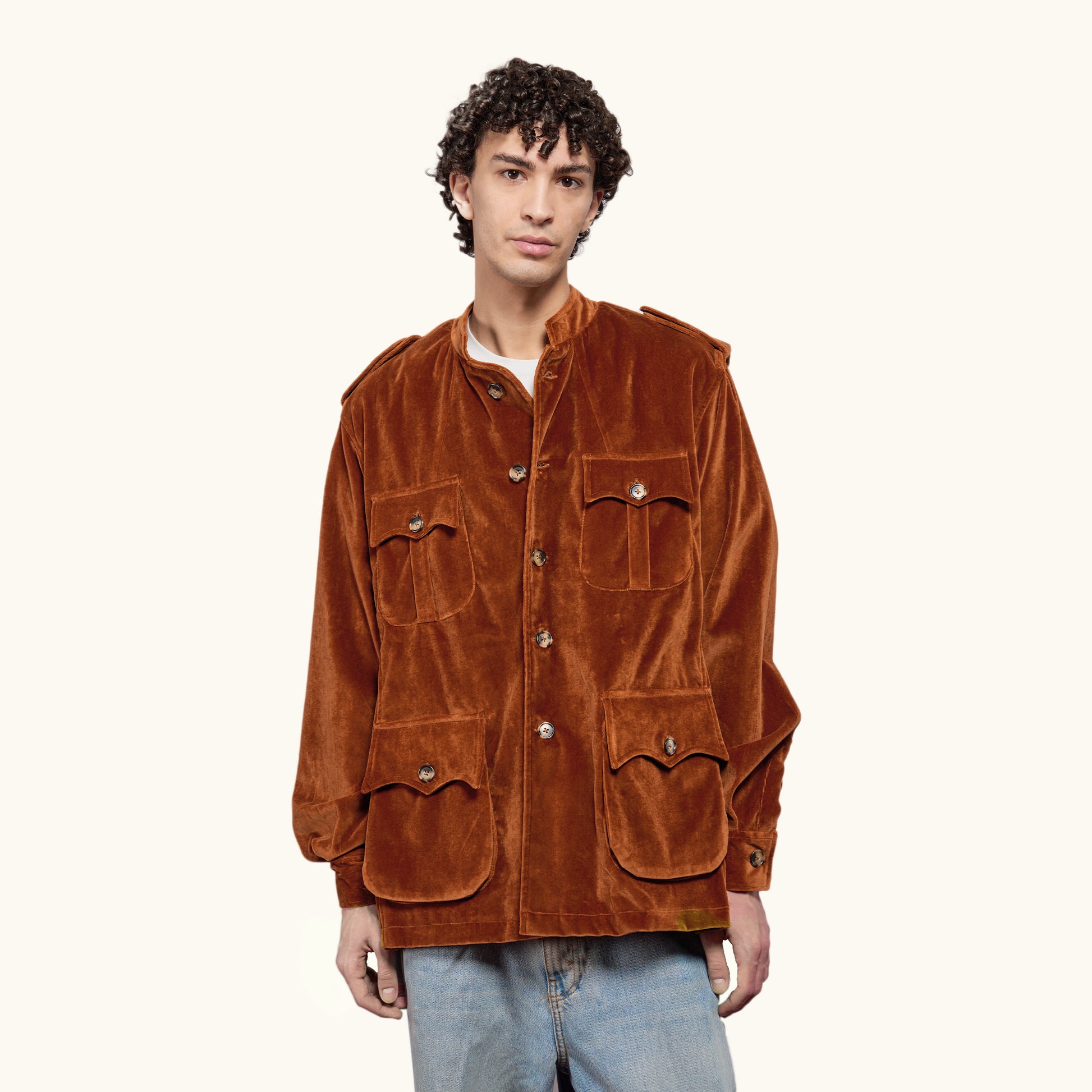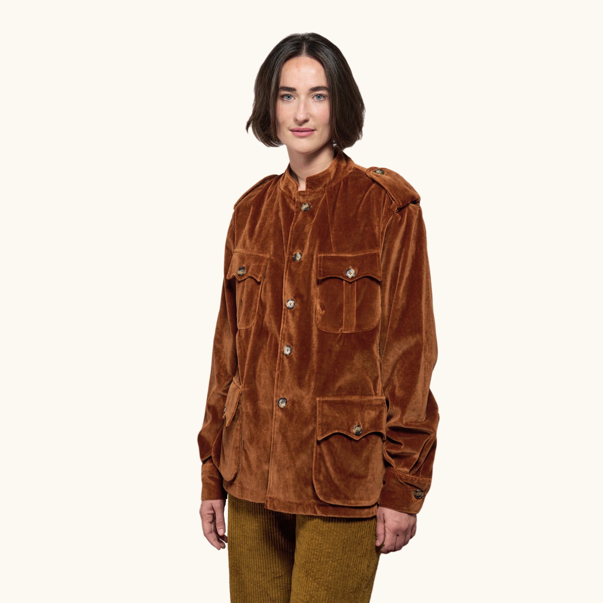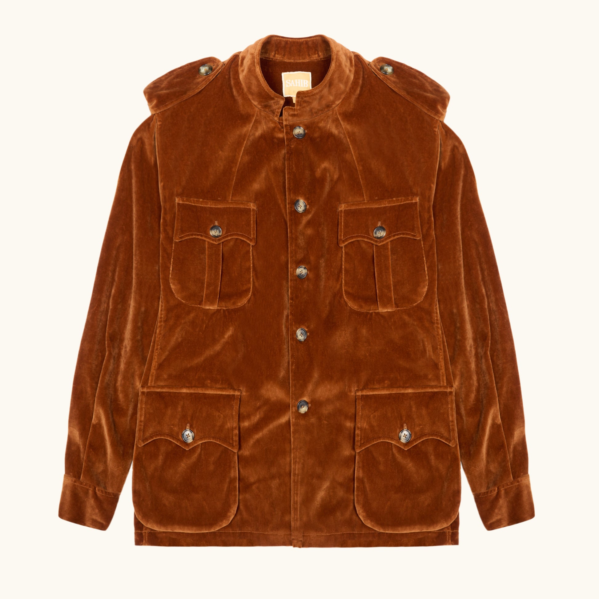 Made of the finest Pontoglio velvet, woven in Italy’s Pontoglio Mill, our Ginger velvet Sahariana jacket is the definition of artisanal craftsmanship and quality tailoring.
