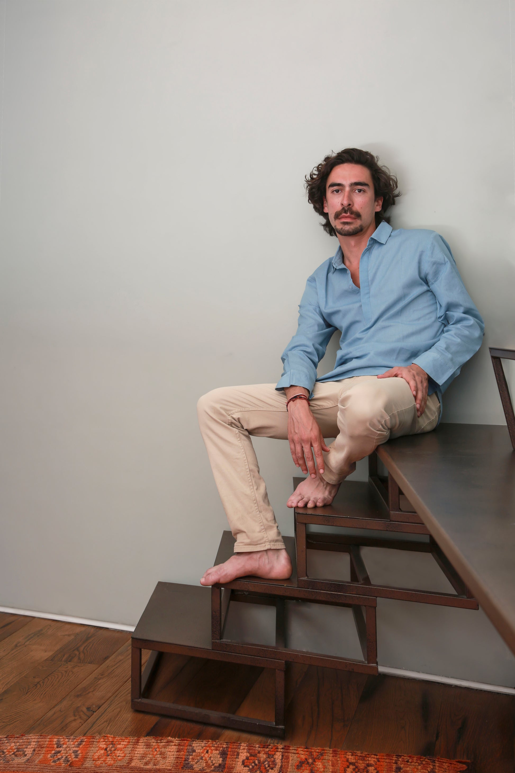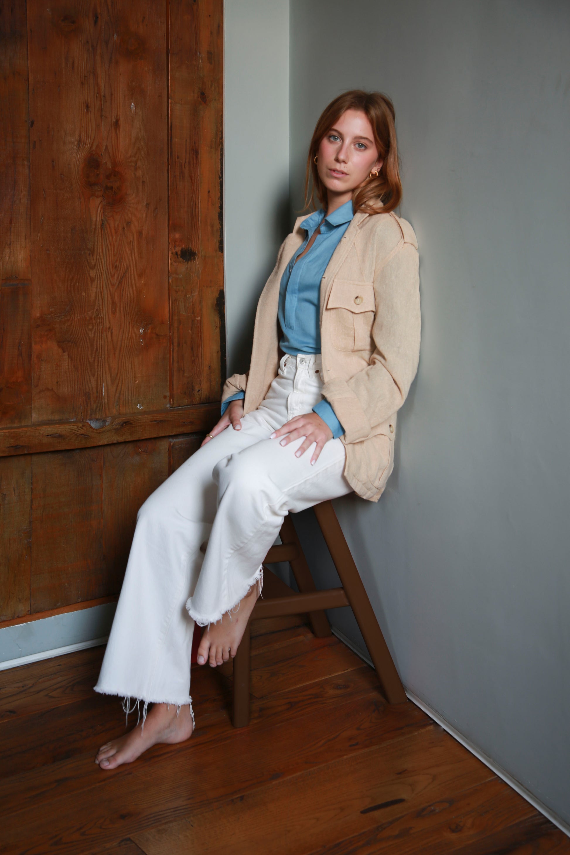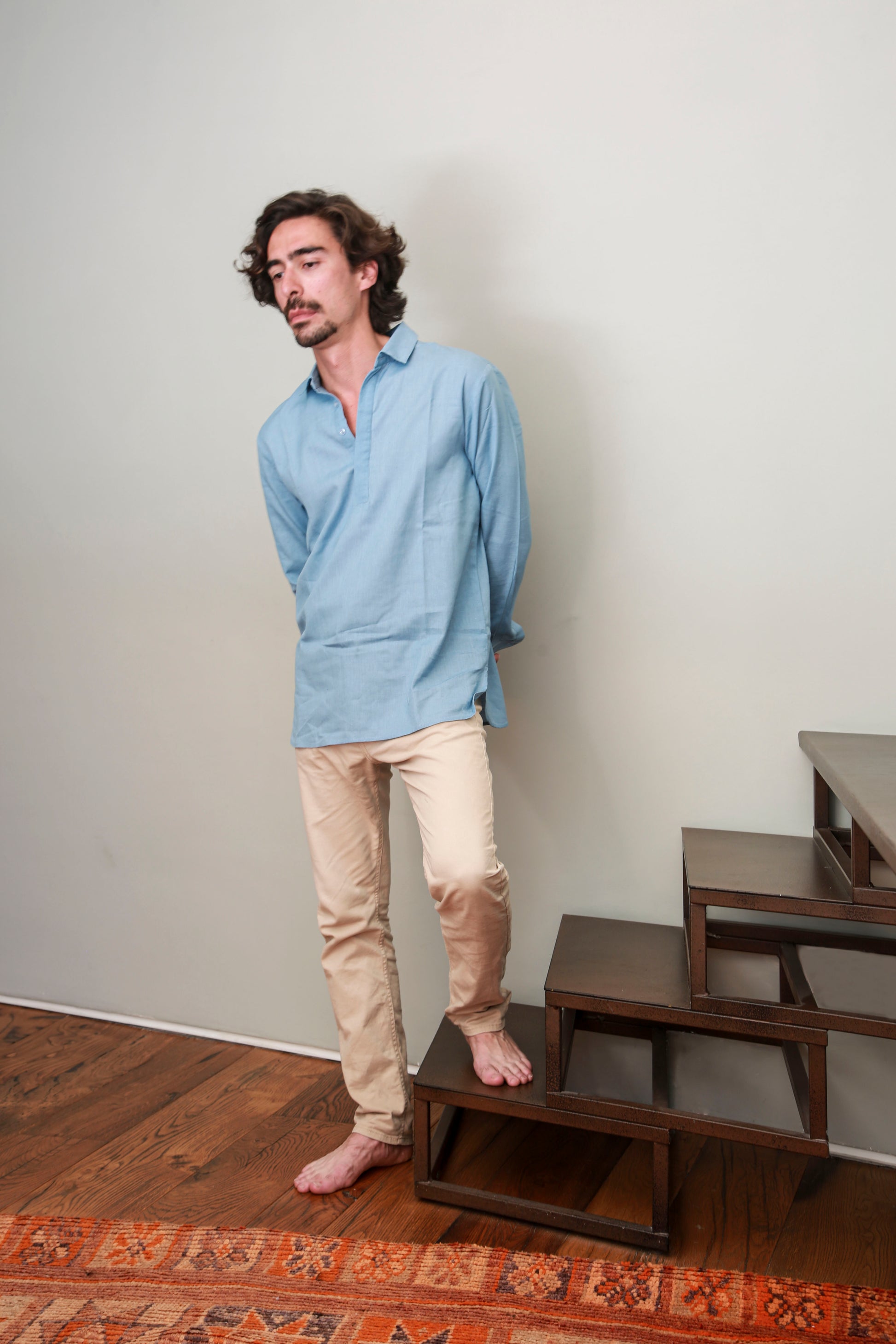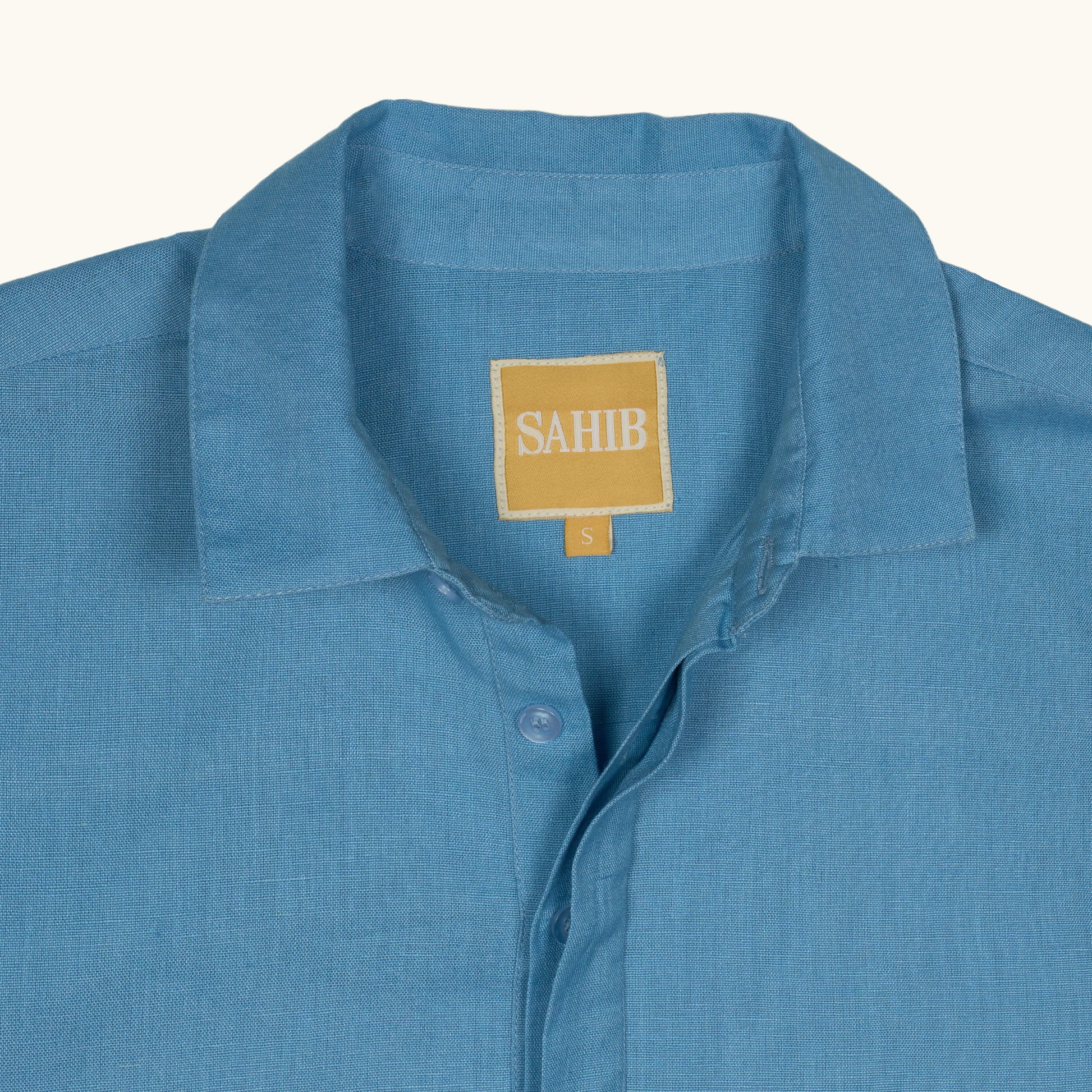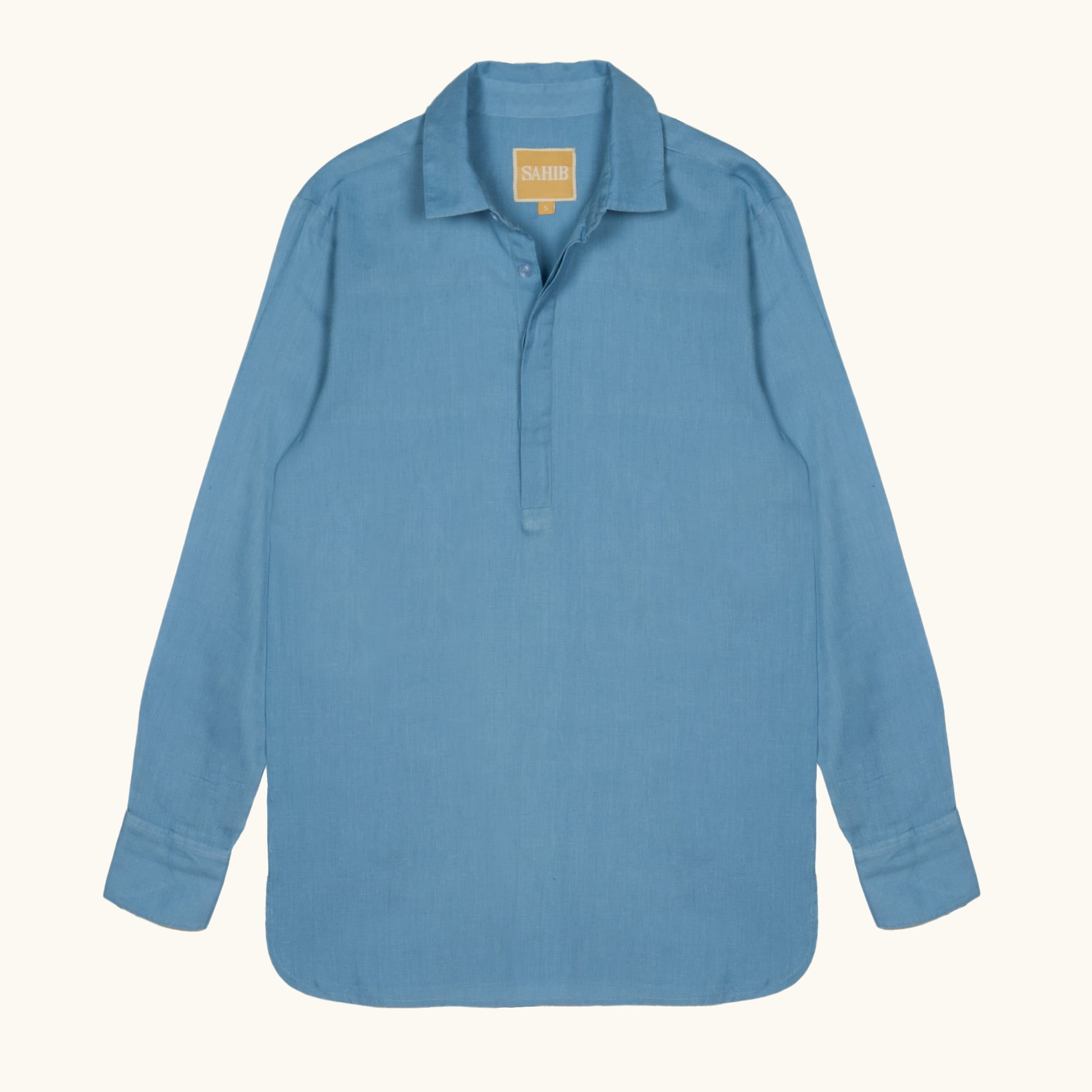 Regular fit, long sleeve, 3 buttons make the sky blue SAHIB linen polo a timeless classic.